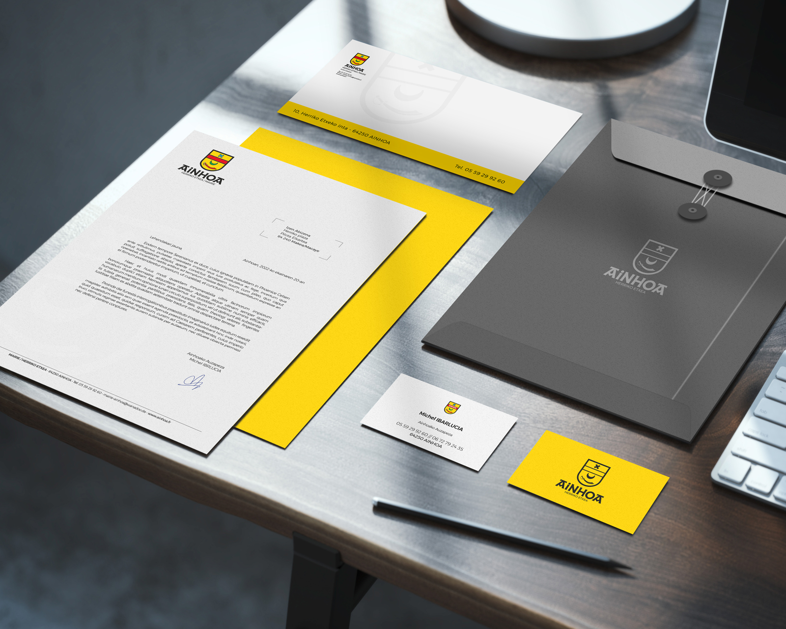 Logo créé pour la mairie d’Ainhoa ainsi que la conception de différents supports administratifs.