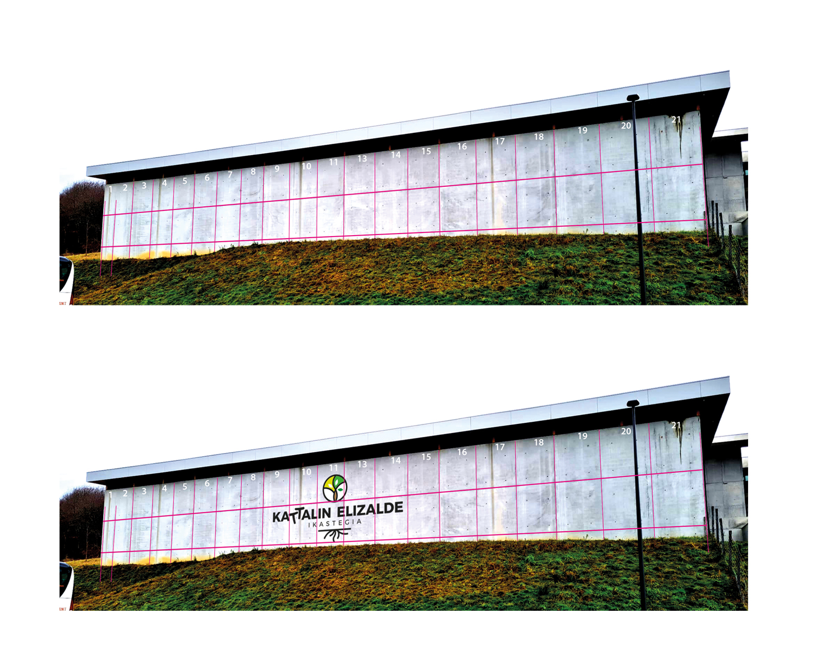 Kolegioko 50 x 7 m.ko paretan instalatutako entseina, auzolanean, Bruno Josié eta Ludo Lhamrirekin. Milesker biei!